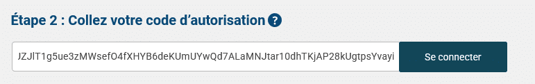 Cliquez tout d’abord sur le bouton “Obtenir le code d’autorisation” :